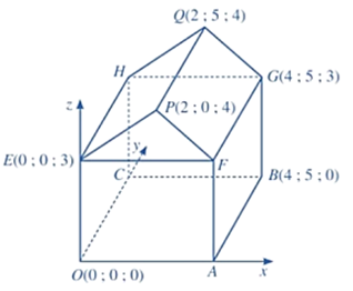 Hình sau đây minh hoạ sơ đồ một ngôi nhà trong hệ trục tọa độ Oxyz, trong