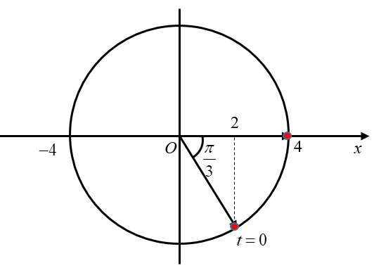 Một vật dao động điều hòa khi qua vị trí cân bằng có tốc độ \(v = 10\pi \left( {cm/s} \right)\), khi qua vị trí biên gia tốc có độ lớn \(25{\pi ^2}\left( {cm/{s^2}} \right)\). Chọn gốc thời gian lúc vật qua vị trí có li độ 2cm và đang chuyển động theo chiều dương, gốc tọa độ ở vị trí cân bằng. Viết phương trình dao động của vật.