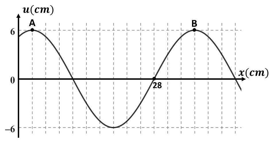 Đồ thị li độ - khoảng cách của dây tại một thời điểm sóng trên dây ổn định được mô tả như hình dưới.