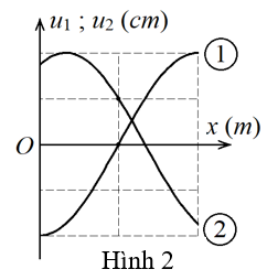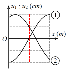 Hai sóng cơ (1) và (2) cùng bước sóng, cùng biên độ lan truyền theo chiều (+) của trục Ox như