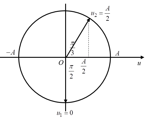 Hai sóng cơ (1) và (2) cùng bước sóng, cùng biên độ lan truyền theo chiều (+) của trục Ox như Hình 2. Độ lệch pha của hai sóng ở cùng một thời điểm có độ lớn bằng