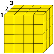 Người ta xếp các khối lập phương 1 dm3 thành hình bên dưới. Thể tích hình đó bằng bao nhiêu đề-xi-mét khối? Bao nhiêu mét khối?