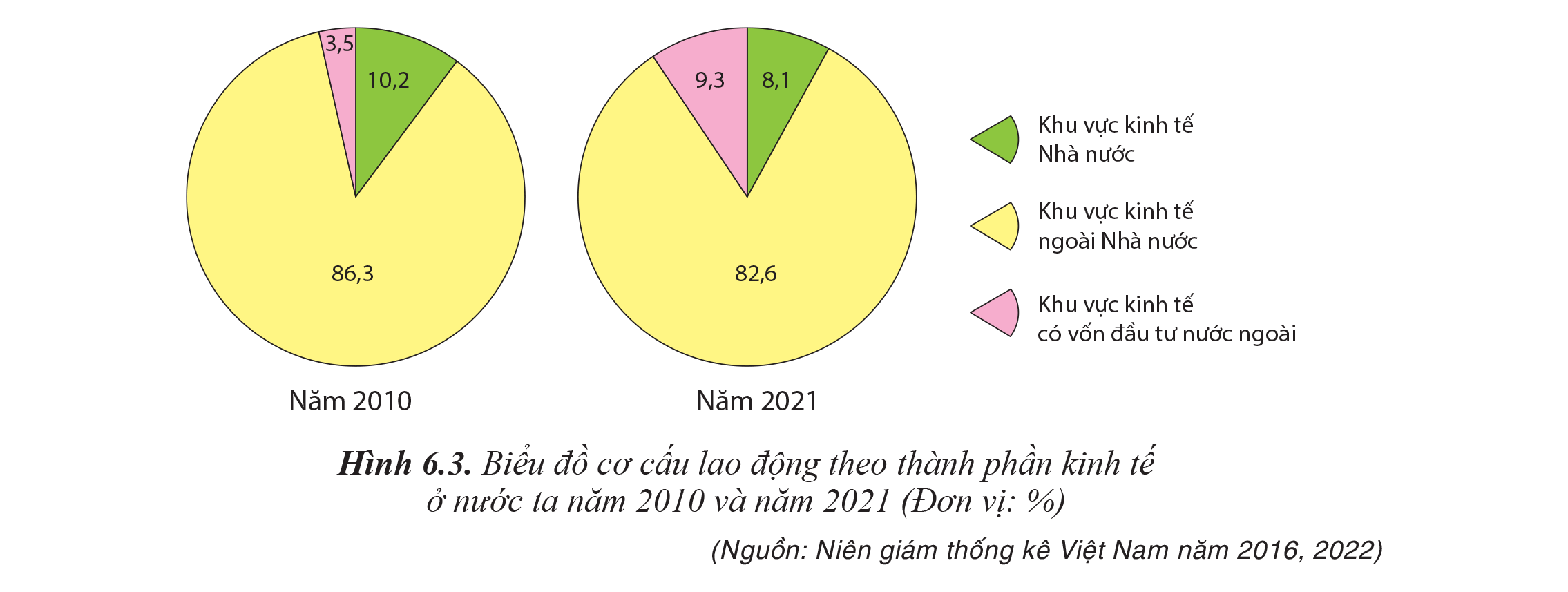 Biểu đồ dưới đây thể hiện nội dung nào về lao động của nước ta giai đoạn 2010 -