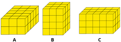 c. Hình hộp chữ nhật C gồm bao nhiêu hình lập phương nhỏ?