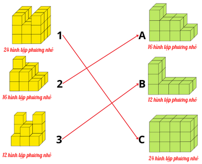 Nối các hình có thể tích bằng nhau:
