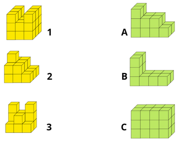 Tìm thể tích của mỗi hình rồi nối các hình có thể tích bằng nhau.