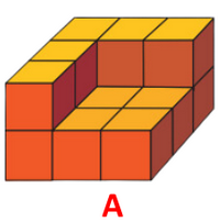 Viết vào chỗ chấm: Hình A được ghép bởi ……………. hình lập phương nhỏ