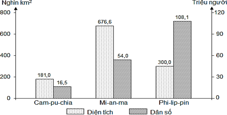 Cho biểu đồ: Diện tích và dân số của một số quốc gia năm 2019 (Số liệu theo