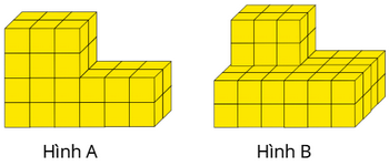 Đếm số hình lập phương nhỏ của các hình rồi so sánh