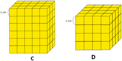 Các hình dưới đây được xếp bởi các khối lập phương có cạnh 1 cm. Viết tiếp câu trả lời vào chỗ chấm.