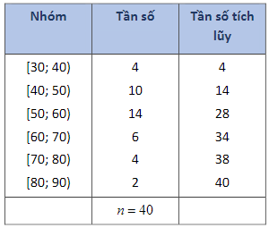 Cho bảng số liệu dưới đây Tính phương sai của mẫu số liệu