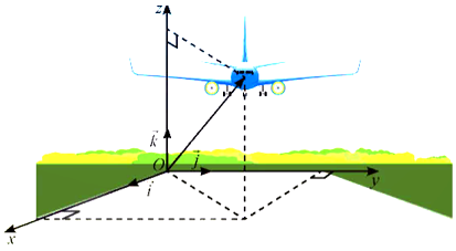 Một chiếc máy bay đang bay trên không trung. Xét hệ trục tọa độ Oxyz được
