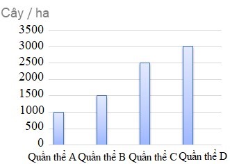 | c) Kích thước của 4 quần thể theo thứ tự từ nhỏ đến lớn là B, A, D, C. | ||