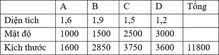 Áp dụng công thức: Kích thước của quần thể = Mật độ × diện tích phân bố.