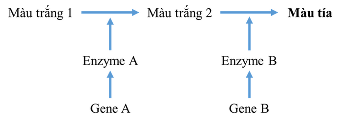 Ở ngô, sự tổng hợp sắc tố màu tía được qui định bởi 2 gene A và B