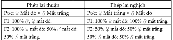 Dùng thông tin sau để trả lời 2 câu hỏi tiếp theo. Khi theo dõi tính trạng màu mắt ở ruồi giấm, Morgan đã làm thí nghiệm như sau: