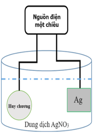 Tiến hành mạ bạc cho một huy chương bằng kim loại đồng (copper) theo sơ đồ minh họa bên.