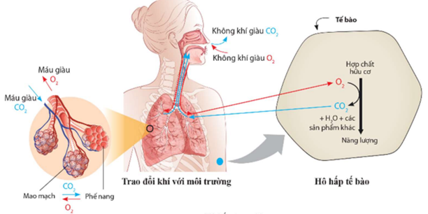 Hình ảnh sau mô tả hô hấp ở người: