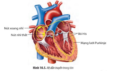 Dựa vào Hình 10.5, hãy giải thích khả năng tự phát nhịp để tạo nên tính tự động của tim?