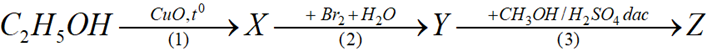 Cho sơ đồ phản ứng sau (biết X, Y, Z là các hợp chất hữu cơ đơn chức khác nhau).