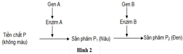 Ở một loài động vật, màu lông do sự tác động của hai cặp gene (A, a và B, b) phân li độc lập quy định. Allele A và allele B tác động đến sự hình thành màu lông theo sơ đồ hình 2, các allele a và allele b không có chức năng trên. Kiểu gene nào dưới đây quy định kiểu hình lông màu nâu?