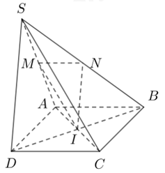 | d) Mặt phẳng \(\left( {MNI} \right)\) song song với mặt phẳng \(\left( {SCD} \right)\) |