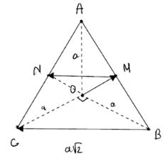 Cho hình chóp \(O.ABC\) có ba cạnh \(OA\), \(OB\), \(OC\) đôi một vuông góc và \(OA = OB = OC = a\). Gọi \(M\) là trung điểm cạnh \(AB\). Góc tạo bởi hai vectơ \(\overrightarrow {BC} \) và \(\overrightarrow {OM} \) bằng