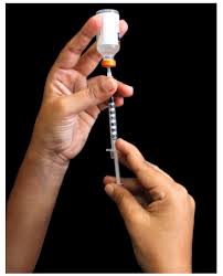 Để đưa thuốc từ lọ vào trong xilanh của ống tiêm, ban đầu nhân viên y tế đẩy pit-tông sát