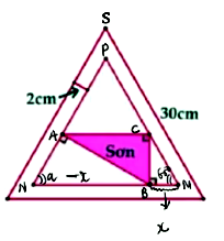 Biết chiều dài một cạnh của tam giác đều (tính ở phần ngoài kệ sách) là \(30cm\) khoảng cách giữa hai cạnh của tam giác đều phần trong và phần ngoài kệ sách là\(2cm\). Chi phí sơn là 7500 đồng cho mỗi \(c{m^2}\).
