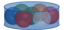 Người ta xếp 7 viên bi là các khối cầu có cùng bán kính \(R = 0,5(cm)\)vào một cái lọ hình trụ. Biết rằng các viên bi đều tiếp xúc với đáy dưới, viên bi chính giữa tiếp xúc với 6 viên bi xung quanh và mỗi viên bi xung quanh đều tiếp xúc với các đường sinh của lọ hình trụ. Thể tích lượng nước cần dùng để đổ đầy bình sau khi đã xếp bi là _______ \(\left( {c{m^3}} \right)\) (làm tròn đến hàng phần trăm). Biết rằng chiều cao của lọ cao gấp \(1,2\)lần đường kính viên bi.