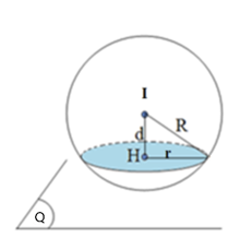 | c) Khoảng cách từ tâm mặt cầu đến mặt phẳng \((Q)\) là \(1.\) | ||