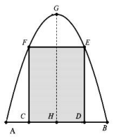 Một cái cổng hình Parabol như hình vẽ sau. Chiều cao \(GH = 4m\), chiều rộng \(AB =