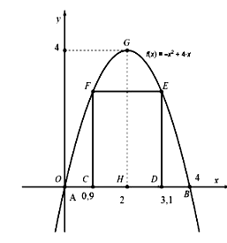 Một cái cổng hình Parabol như hình vẽ sau. Chiều cao \(GH = 4m\), chiều rộng \(AB = 4m,AC = BD = 0,9m\) . Chủ nhà làm hai cánh cổng khi đóng lại là hình chữ nhật C D E F tô đậm có giá là 1200000 đồng \(/{m^2}\), còn các phần để trắng làm xiên hoa có giá là 900000 đồng \(/{m^2}\). Hỏi tổng số tiền làm cổng parabol như trên (làm tròn đến hàng phần chục, đơn vị triệu đồng) bằng