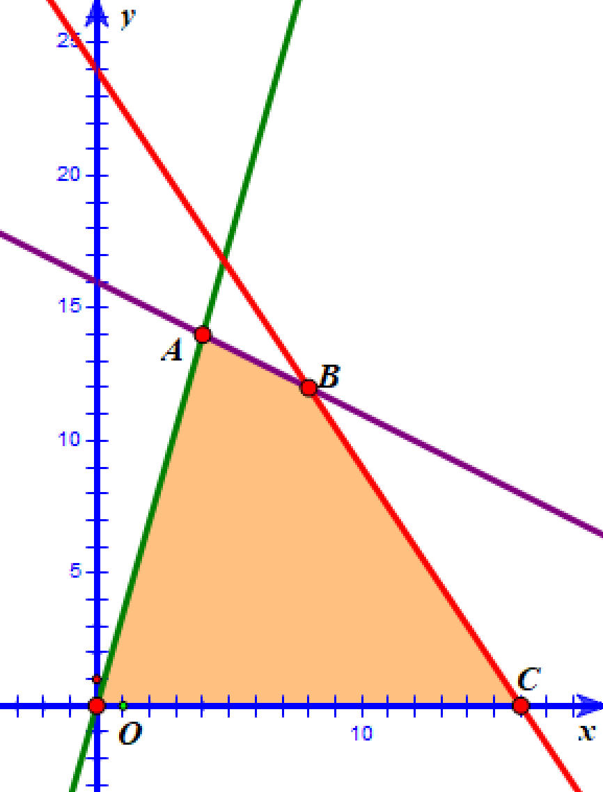 Một xưởng sản xuất bàn và ghế. Một chiếc bàn cần 1,5 giờ lắp ráp và 1 giờ hoàn thiện. Một chiếc ghế cần 1 giờ lắp ráp và 2 giờ hoàn thiện. Bộ phận lắp ráp có 3 công nhân, bộ phận hoàn thiện có 4 công nhân. Mỗi công nhân không làm việc quá 8 giờ một ngày và năng suất lao động của công nhân ở mỗi bộ phận đều như nhau. Thị trường luôn tiêu thụ hết sản phẩm của xưởng và lượng ghế tiêu thụ không vượt quá 3,5 lần số bàn. Một chiếc bàn lãi 600 nghìn đồng, một chiếc ghế lãi 450 nghìn đồng. Để đem lại lợi nhuận cao nhất, xưởng đó sản xuất x chiếc bàn và y chiếc ghế. Tính giá trị biểu thức \(T = x + y\).