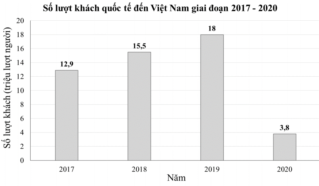 Trong giai đoạn từ năm 2017 đến năm 2020, trung bình mỗi năm Việt Nam đón bao nhiêu triệu lượt khách quốc tế đến du lịch?