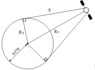 Quãng đường sóng điện từ truyền thẳng từ vệ tinh đến điểm xa nhất trên Trái Đất được xác định bởi công thức: \(S = \sqrt {R_V^2 - R_T^2} \)