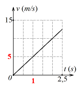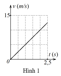 Vật khối lượng m = 500 g đang nằm yên trên sàn ngang nhẵn không ma sát thì chịu tác dụng một lực F không đổi theo phương ngang. Kết quả vật chuyển động mà vận tốc của vật phụ thuộc theo thời gian được mô tả như đồ thị Hình 1. Giá trị của F là