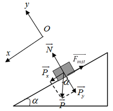 Một vật được thả trượt không vận tốc đầu trên mặt phẳng cố định nghiêng góc \(\alpha = {30^0}\) so với phương ngang. Hệ số ma sát giữa vật và mặt phẳng nghiêng là \(\mu = 0,3\). Lấy \(g = 10m/{s^2}\).
