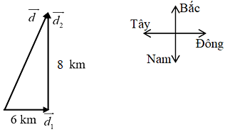 Một người đi xe máy từ nhà đến bến xe bus cách nhà 6km về phía đông. Đến bến xe, người đó lên xe bus đi tiếp 8km về phía bắc. Độ dịch chuyển tổng hợp của người đó là