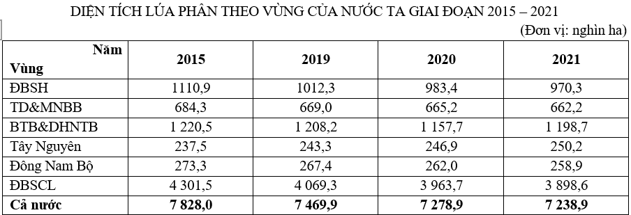 Vùng có diện tích lúa thấp nhất cả nước năm 2019 là
