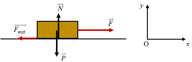 Người ta đẩy một cái thùng có khối lượng 50kg theo phương ngang với lực 220N làm thùng chuyển động trên mặt phẳng ngang. Hệ số ma sát giữa thùng và mặt phẳng là 0,2. Tính gia tốc của thùng. Lấy \(g = 10m/{s^2}\).