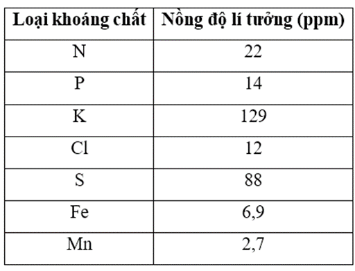 Bảng 1. Nồng độ lí tưởng của các loại khoáng trong đất