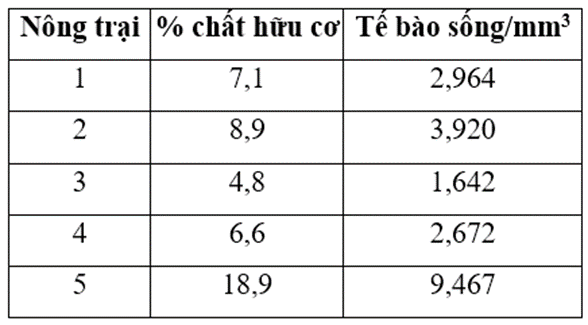 Đất có nhiều tế bào sống trên mỗi mm3 thường tiêu thụ nhiều oxygen hơn đất có ít tế bào sống hơn. Đất của trang trại nào sẽ tiêu thụ nhiều oxygen hơn?
