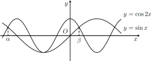 Cho hàm số \(y = \sin \left( x \right)\)và hàm số \(y = \cos \left( {2x} \right)\)có đồ thị như hình vẽ.