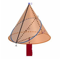 Nhân dịp lễ Noel sắp đến, Đại học Bách Khoa Hà Nội dự tính làm một cây thông Noel tạo điểm nhấn trong khuôn viên nhà trường. Cây thông có kích thước như sau: đường sinh \(l = 5m\), bán kính đáy \(R = 2,5m.\)Biết rằng tam giác \(SAB\)là thiết diện qua trục của hình nón và \(C\)là trung điểm của \(SB\). Trang trí một hệ thống đèn nháy chạy từ \(A\)đến \(C\)trên mặt nón (tham khảo hình vẽ). Giá trị ngắn nhất của chiều dài dây đèn là ________ (làm tròn đến hàng phần mười).