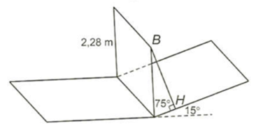 Ở một con dốc lên cầu, người ta đặt một khung khống chế chiều cao, hai cột của khung có phương thẳng đứng và có chiều dài bằng \(2,28\;{\rm{m}}\). Đường thẳng nối hai chân cột vuông góc với hai đường mép dốc. Thanh ngang được đặt trên đỉnh hai cột. Biết dốc nghiêng \({15^\circ }\) so phương nằm ngang. Phát biểu sau là đúng hay sai: