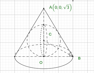 Trong không gian \(Oxyz\), cho điểm \(A(0;0;\sqrt 3 )\) và điểm \(B\) thay đồi thuộc mặt phẳng \((Oxy)\) sao cho diện tích tam giác \(OAB\) bằng \(\dfrac{{\sqrt 3 }}{2}\). Gọi \(C\) là điềm trên tia \(Oz\)thòa mãn \(d[C,AB] = d[C,OB] = \alpha \). Thể tích của khối tròn xoay tạo bời tập hợp tất cả các điểm \(M\) mà \(CM \le \alpha \) bằng ________ (làm tròn kết quả đến hàng phần trăm)