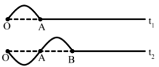 Sử dụng thông tin sau cho các câu hỏi bên dưới: Hình vẽ bên là hình ảnh sóng hình sin truyền trên một sợi dây đàn hồi rất dài tù đầu O (được căng ngang) tại hai thời điểm t1 và t2.