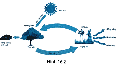 Dựa vào sơ đồ mô tả sự chuyển hóa năng lượng mặt trời thành các dạng năng lượng trên Trái Đất ở Hình 16.2, cho biết nhận xét nào sau đây là đúng?