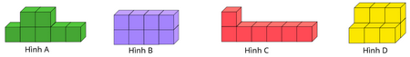 - Xác định thể tích của các hình A, B, C, D bằng cách đếm các hình lập phương nhỏ.